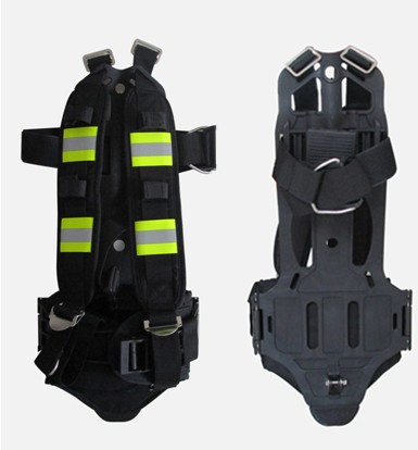 3. 背托總成(背板,腰帶,肩帶,氣瓶固定帶):肩帶由阻燃聚酯織物制成,背帶采用雙測(cè)科調(diào)結(jié)構(gòu),使重量落于腰胯部位,減輕肩帶對(duì)胸部的壓迫。背托由炭纖維復(fù)合材料注塑制成,具有阻燃及防靜電功能,在背托內(nèi)側(cè)襯有彈性護(hù)墊,可是佩戴者舒適。腰帶采用卡扣設(shè)計(jì)、易于調(diào)節(jié)。