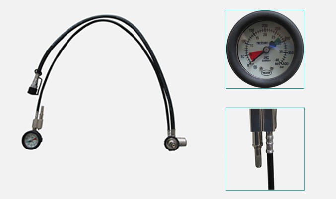4. 減壓總成(快速鎖緊插頭,氣源壓力表,氣瓶余壓報(bào)警器,高壓導(dǎo)氣管組,中壓導(dǎo)氣管組,減壓器插頭座組):壓力表表盤采用熒光材料,在暗處也可以清楚的觀察到壓力值。表殼采用高強(qiáng)度抗沖擊材料,并設(shè)有橡膠保護(hù)套,起到防水、減震、防塵等作用。報(bào)警裝置連在接近壓力表的高壓導(dǎo)管上,氣瓶中的壓力降至5MPA時(shí),報(bào)警哨會(huì)發(fā)出持續(xù)的報(bào)警聲響。