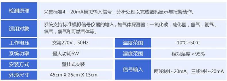 JD-GD可燃氣體檢測報警器(可燃氣體報警控制器)是本公司研制的一款可以同時處理多組4—20mA信號類型的儀器。它具有穩(wěn)定性好,準(zhǔn)確度高和參數(shù)智能化設(shè)置的特點,外接控制端口豐富,用戶可以自由選擇掛接傳感器的種類和接入端口,并通過簡單設(shè)置即可進行現(xiàn)場檢測與報警。系統(tǒng)主要應(yīng)用于需要檢測可燃氣體的場合中,顯示待檢氣體的數(shù)值指標(biāo)量,當(dāng)現(xiàn)場的某種待檢氣體的指標(biāo)不符合所設(shè)置的標(biāo)準(zhǔn)時,系統(tǒng)會自動進行一系列報警動作,如報警,排風(fēng),跳閘等(根據(jù)用戶的不同設(shè)置而不同)。