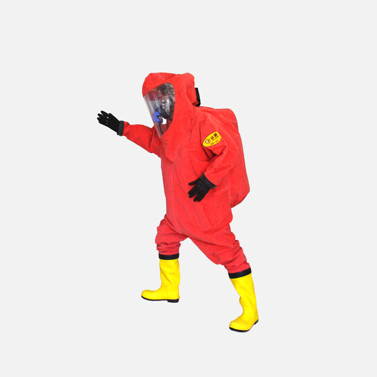 內(nèi)置型防化服只能搭配隔絕式防毒面具使用,這是因為內(nèi)置型防化服內(nèi)部是一個獨立空間,外界的空氣無法進入,因此呼吸防 護只能使用具有自帶氣源的防護用品,比如正壓式空氣呼吸器等,在使用時,先將防化服穿至腰部,然后佩戴空氣呼吸器,測試呼吸暢通后完成防化服的穿戴。