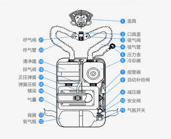 最后,重新安裝貯存。在完成全部清洗、消毒之后要對(duì)氣瓶充氣,將各個(gè)部件進(jìn)行重新組裝調(diào)試,安裝完備,檢查各連接處氣密性,尤其是面罩的氣密性,對(duì)于不嚴(yán)密的面罩及時(shí)找出原因或更換。一切檢查無誤,將正壓式氧氣呼吸器存放在陰涼干燥處以備下次使用。