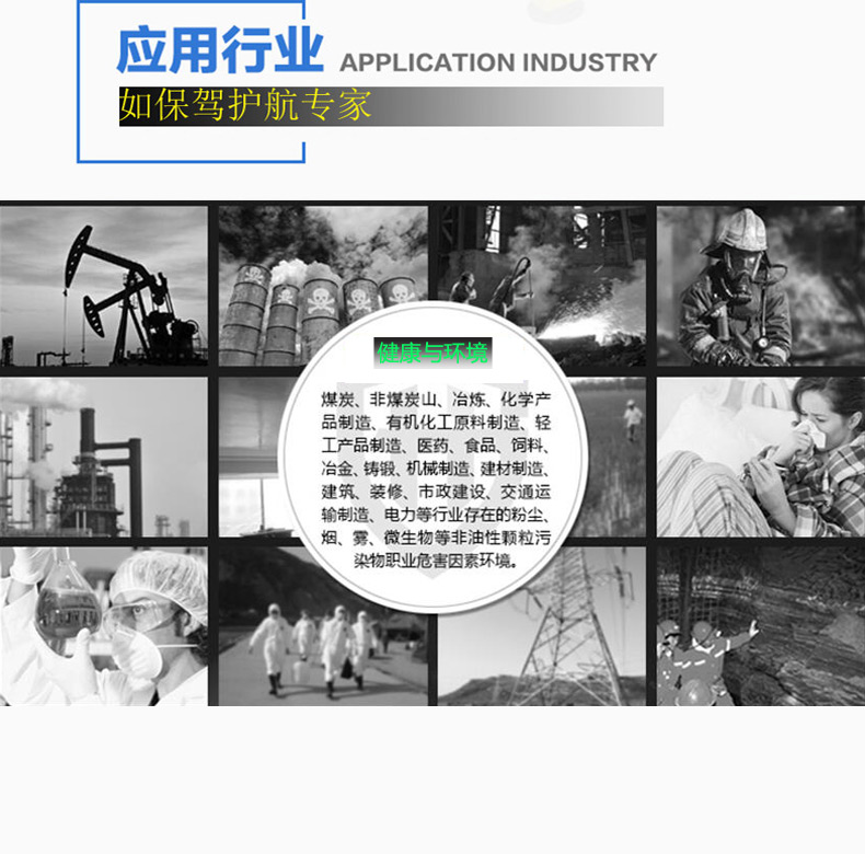選用推薦:適用于霧霾,面粉加工廠,礦廠(礦物加工粉塵),棉花加工,五金鑄造,汽車(chē)尾氣中產(chǎn)生的粉塵和部分有毒氣體環(huán)境可選用濾棉搭配濾毒盒進(jìn)行防護(hù)