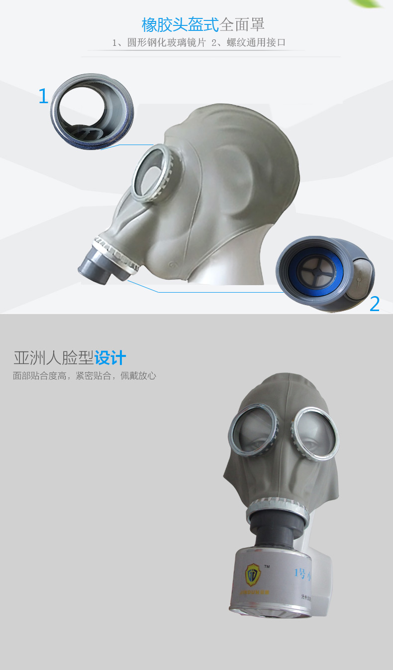 JD橡膠全面具+1號無機(jī)氣體濾毒罐 綜合無機(jī)氣體防毒面具