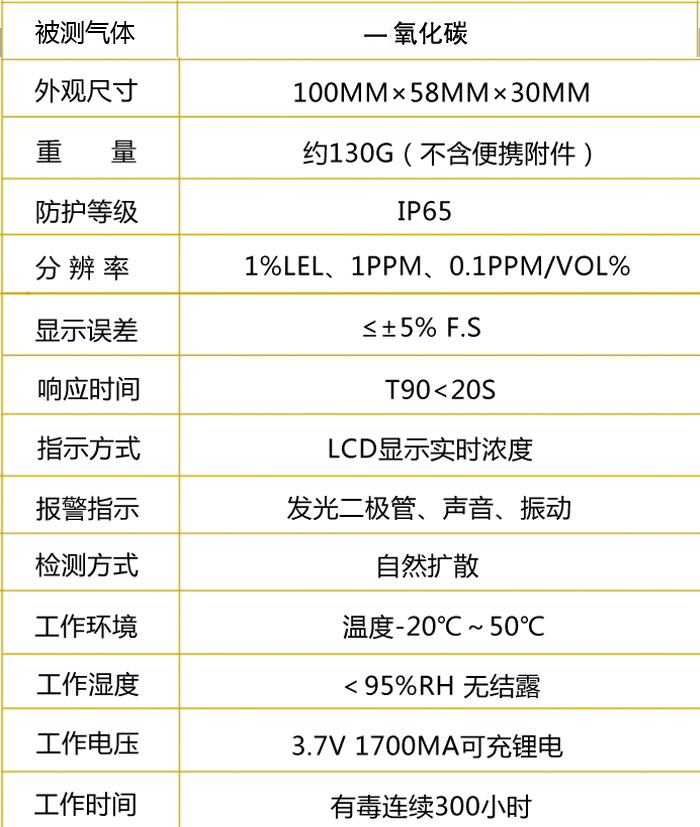 氣體檢測(cè)儀規(guī)格參數(shù):