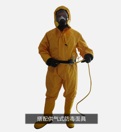 3.穿防化服需要另外一個(gè)人在旁協(xié)助并檢查是否穿戴完好,最好準(zhǔn)備一個(gè)凳子以方便穿戴。