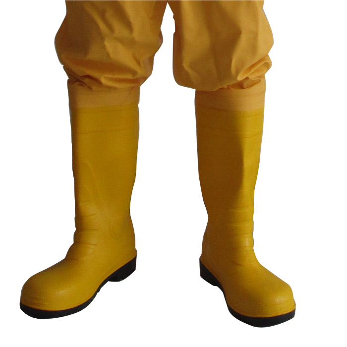 3. 配備專業(yè)防化靴 深花紋防滑耐磨鞋底 便于行走操作 優(yōu)質(zhì)PVC,耐酸堿防油污 鞋面:PVC+特種材料 鞋底材料:PVC+丁晴橡膠 防化靴身厚度達(dá)3毫米,隔熱性能優(yōu)異
