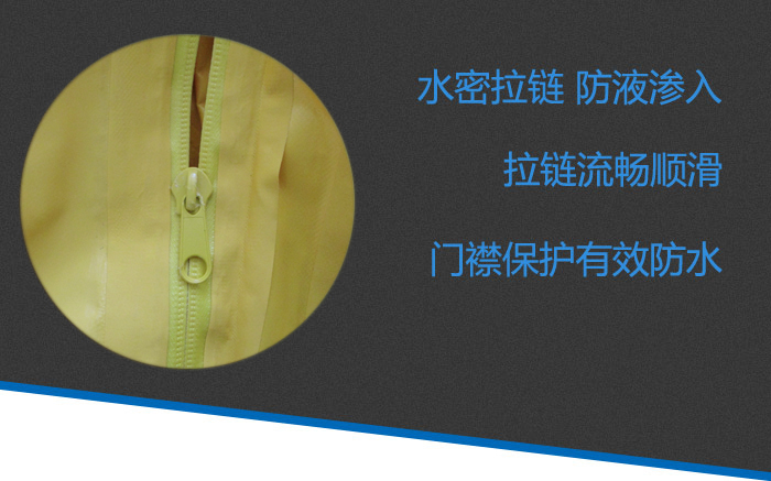 1. 高密閉性水密拉鏈 門(mén)襟保護(hù) 尼龍搭扣粘連 提供高端雙層防護(hù) 確保化學(xué)液體不滲透 拉鏈流暢順滑 手感舒適