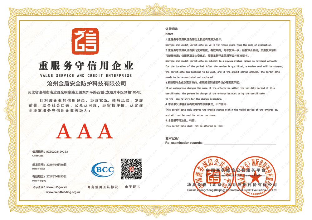 滄州金盾安全防護科技有限公司 電話:0317-8616698 郵箱:2277468668@qq.com 全國服務(wù)熱線:400-888-7543 地址:河北省滄州市南皮縣城市國際
